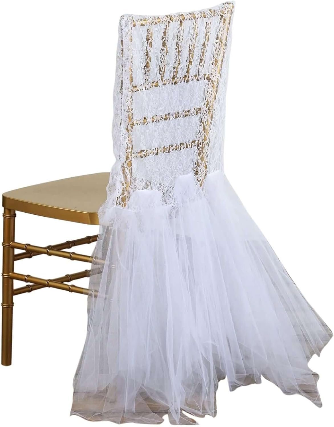 Efavormart White Lace and Tulle Chair Tutu Cover Skirt, Wedding Event Chair Decor