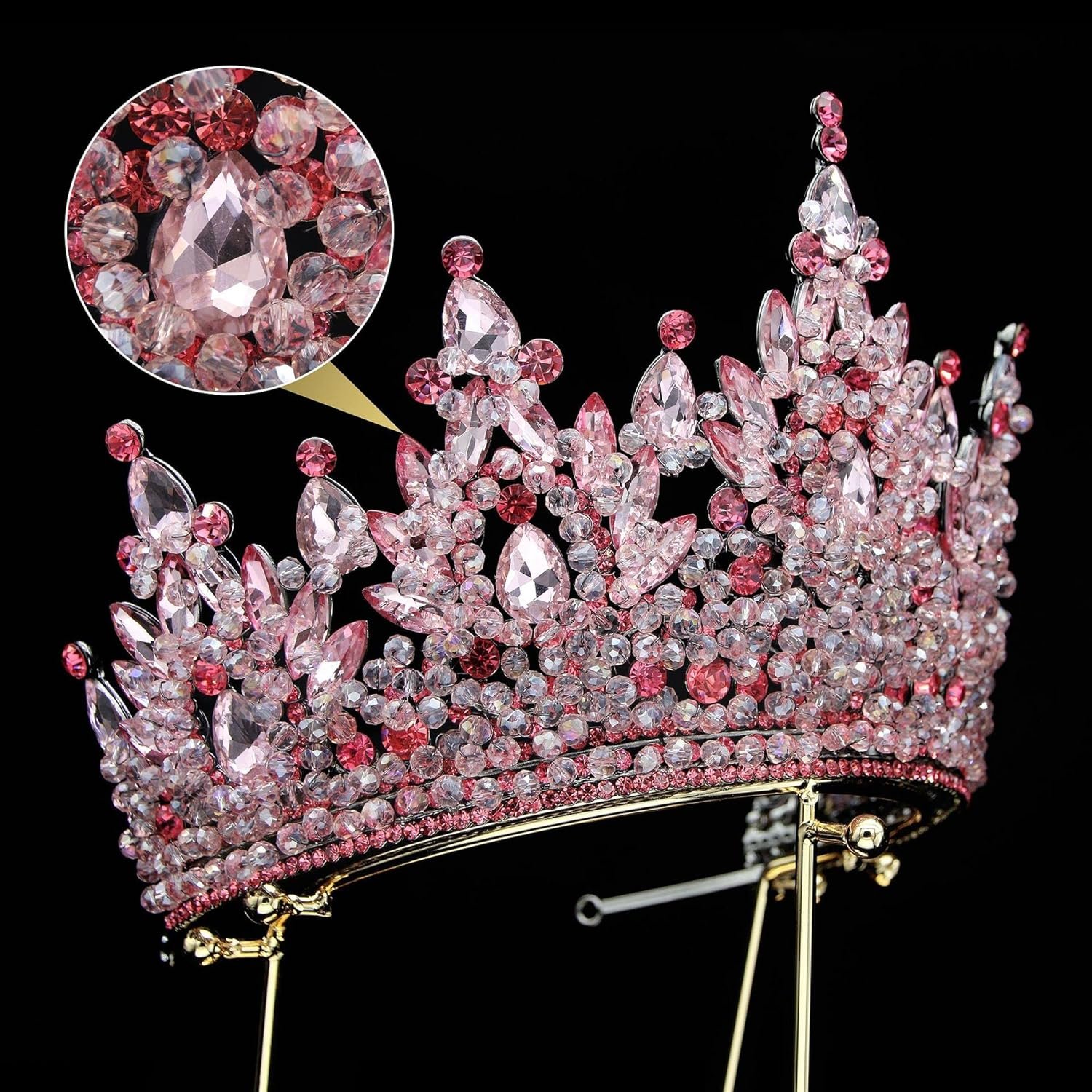 This large tiaras and crowns are made with the highquality crystal and rhinestones, making them sparkle and shine in the light. The tall pageant crowns and royal queen headbands are designed with a princess-like aesthetic, perfect for weddings, pageant, birthdays, proms, quinceanera, parties, photo shoot, and cosplay.