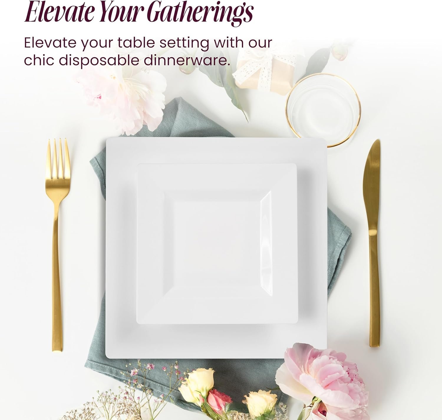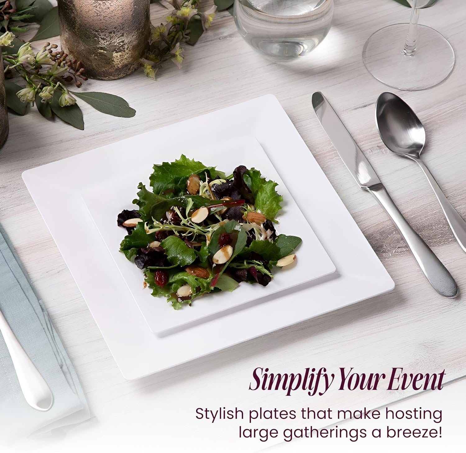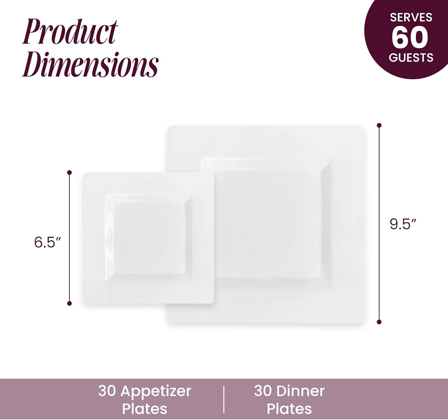 Aya’s 60ct White Square Disposable Plates – Heavy Duty Plastic Party Plates for Christmas, Thanksgiving (30 Dinner & 30 Salad)