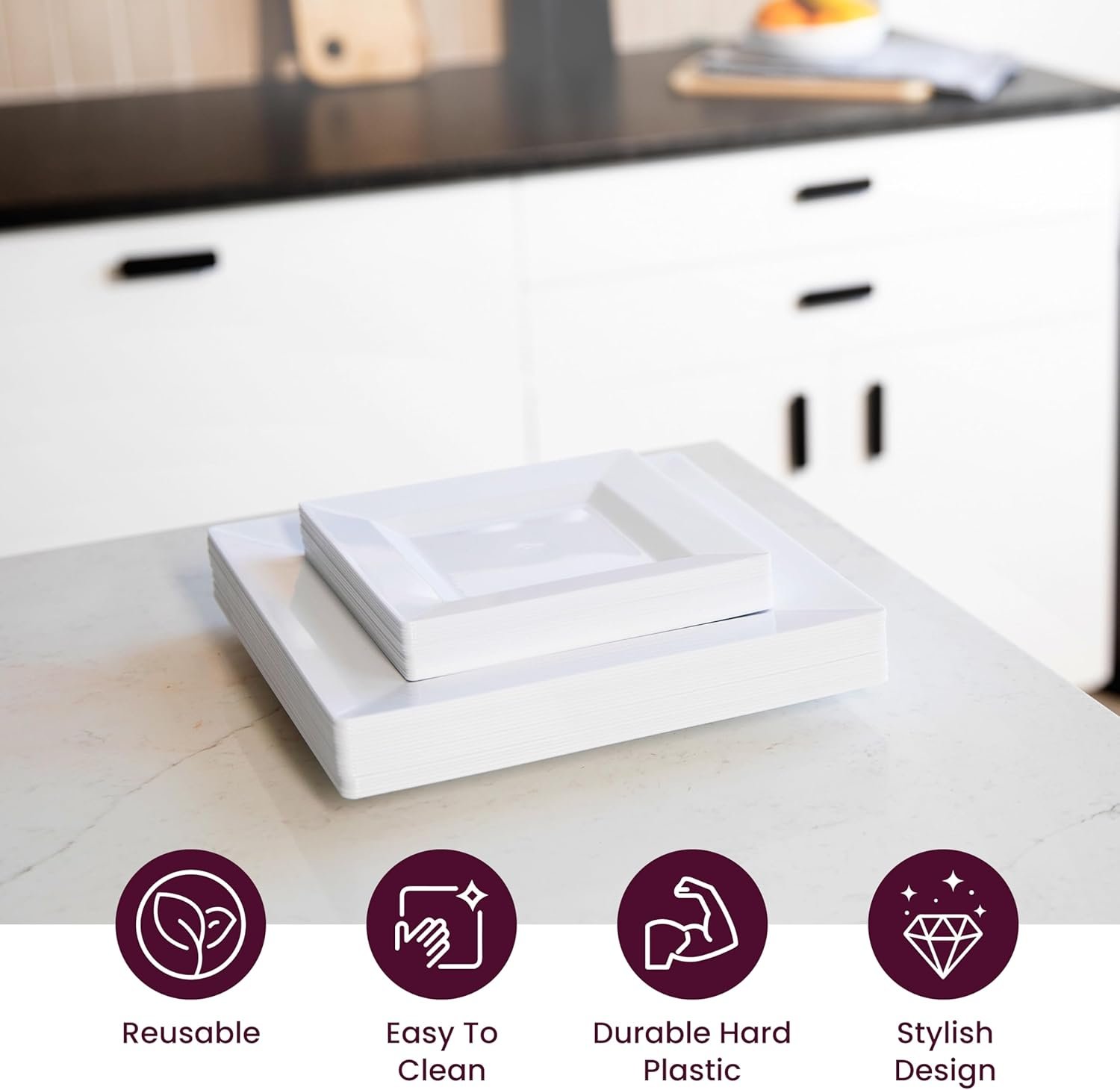 Reusable and Disposable: Made from durable hard plastic for a heavy duty look; toss them after use or rinse and reuseour white square plastic plates; eliminate the struggle of washing dishes
