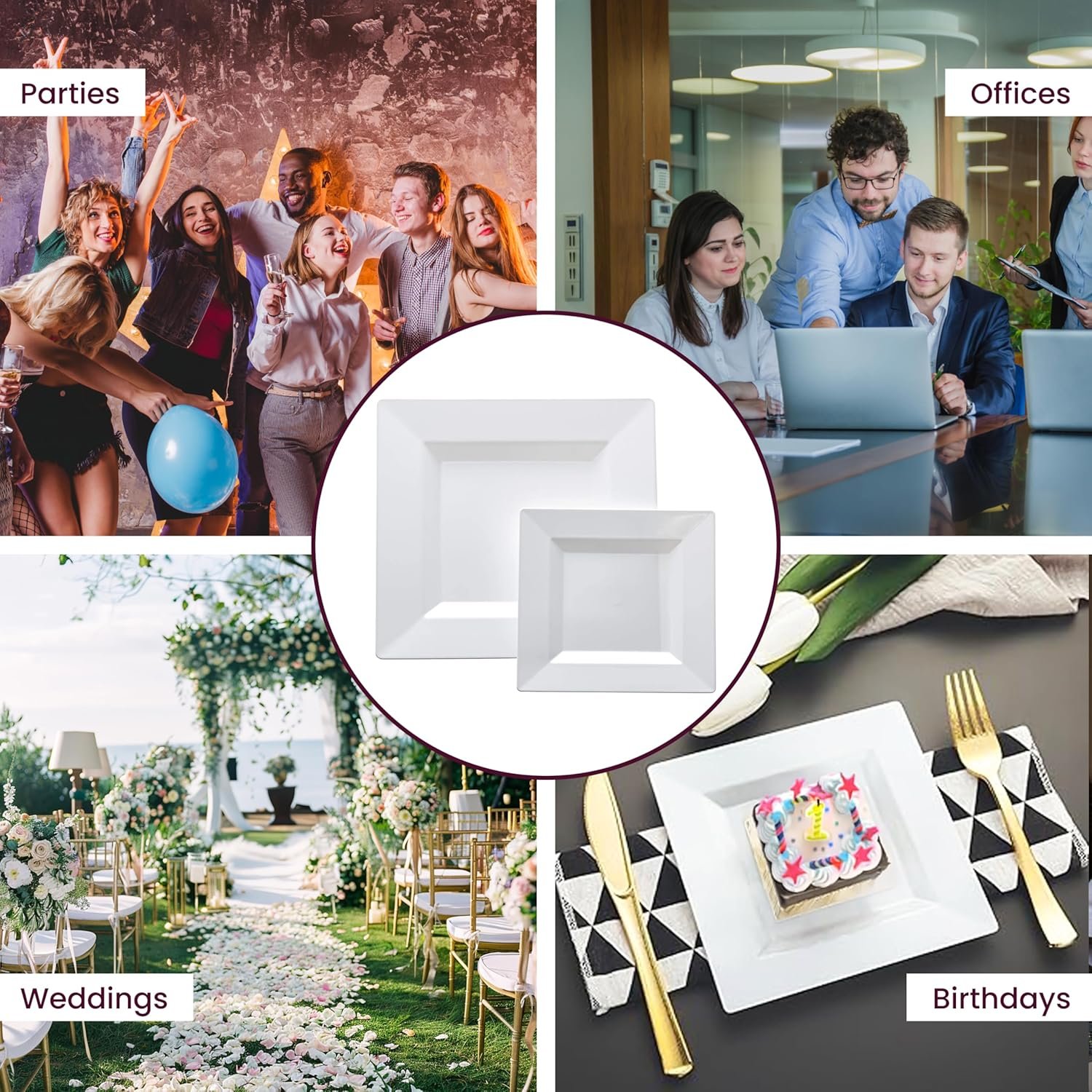 Quick Cleanup Solution: Perfect for large gatherings; cleanup is a breeze with these square disposable plates; just throw them away after your event for easy post-party tidying