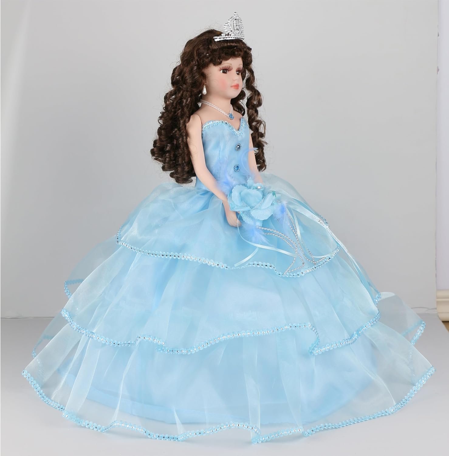 18″ Porcelain Quinceanera Umbrella Doll (Quince Anos)~ KB18724-4B~ (Baby Blue)