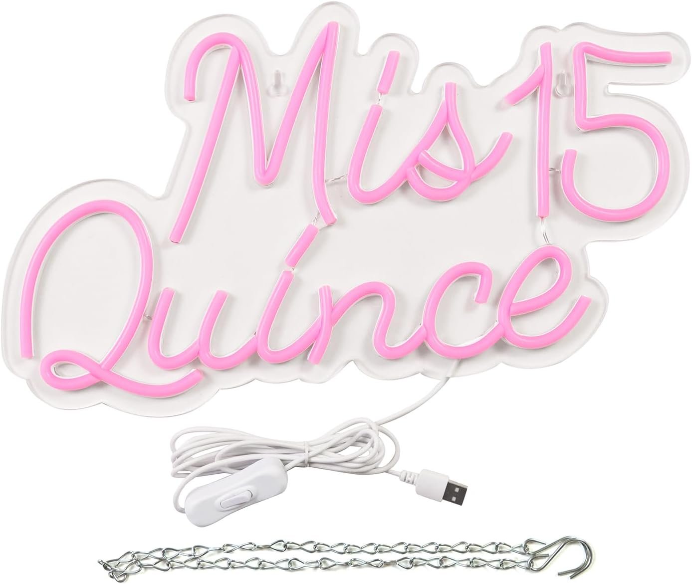JFLLamp Mis 15 Quinceanera Neon Signs for Wall Decor Neon Lights for Bedroom Led Signs Suitable for Quinceanera Christmas Birthday Party Unique Gift for Lover, 5V Power Adapter, 16.2 * 9.7 Inch(Pink)