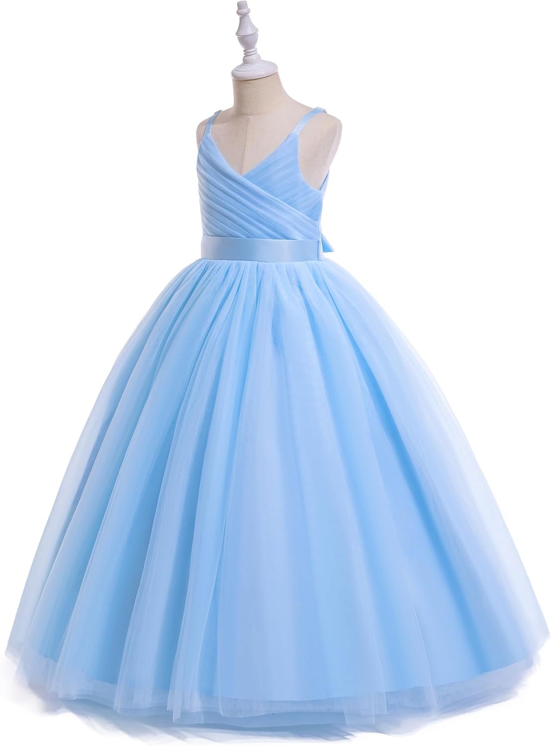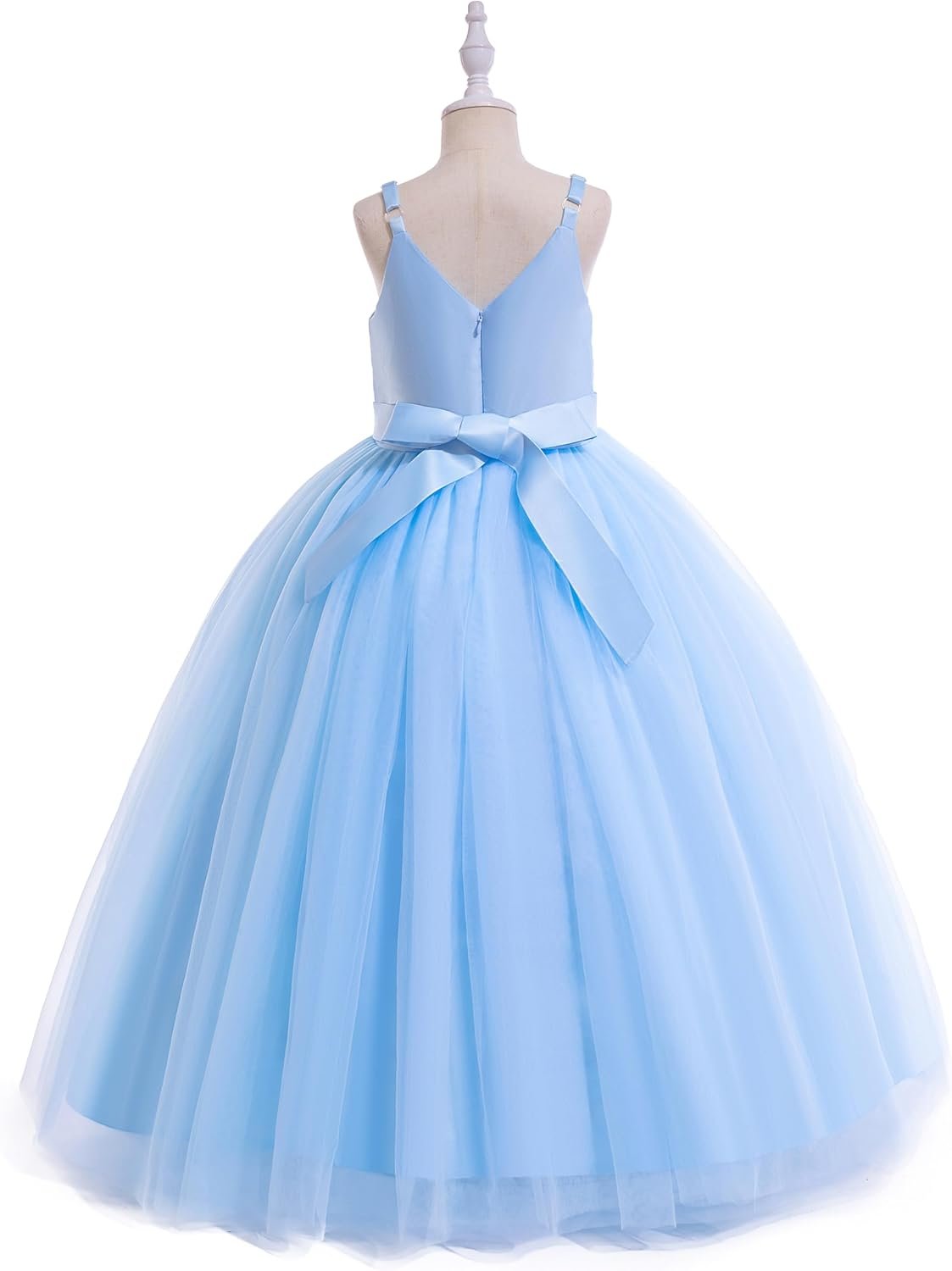 *The dress is angelic ankle length little/ big girls ball gown pageant party dress, a-line sleeveless long flower girls dress. Flower girl party dress, A-line flower girls dress, sash, stitching, ball gown, sleeveless, V-Neck, bowknot, mesh, movable wear-resistant closure zipper on the back, hidden back zipper closure, sash ties back.