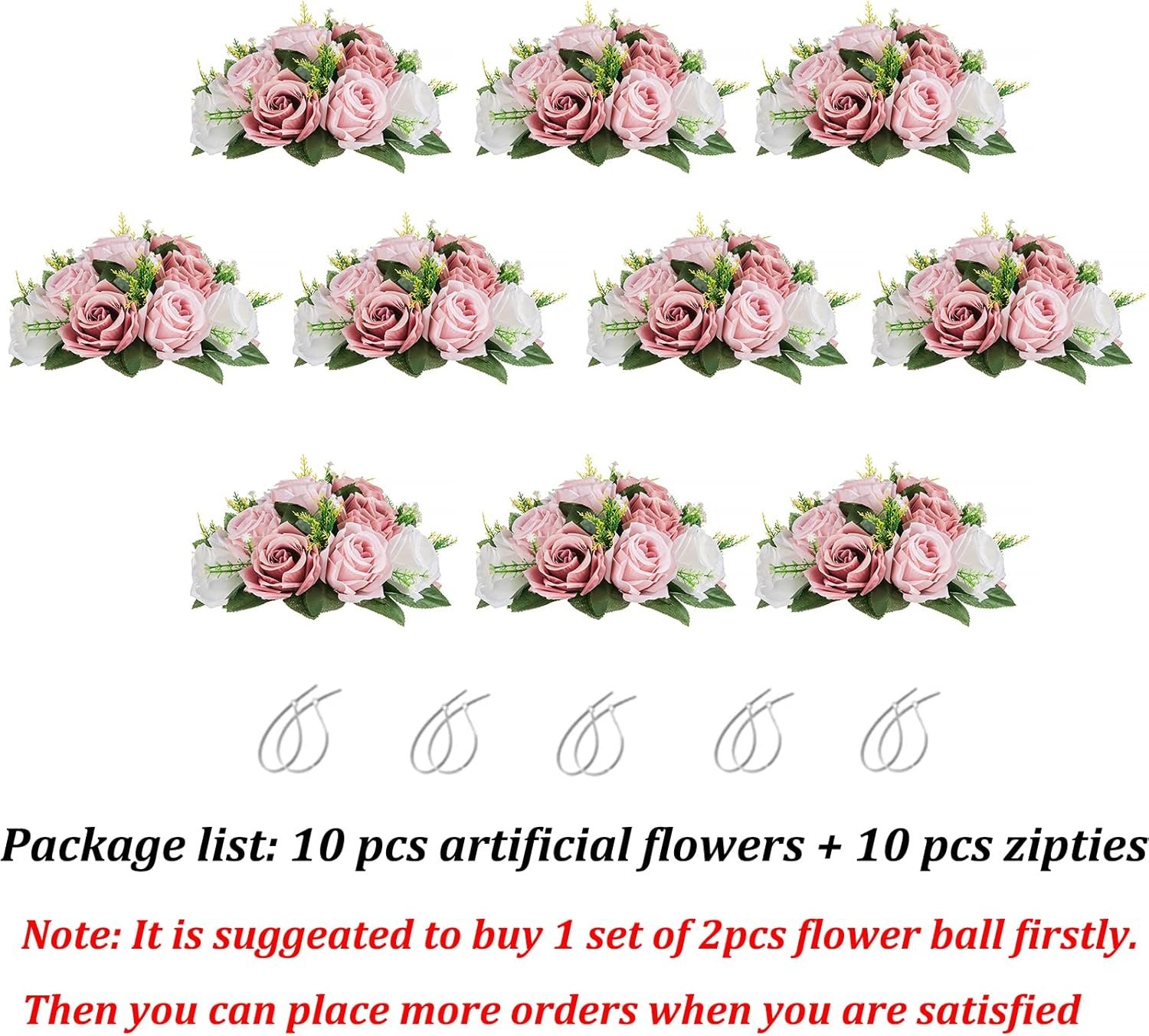 DIY WITH FREE ZIP TIES: Only with zip ties in the parcel, you can put these flowers bases for rose together to make a large bunch or a kissing ball, as well as make a floral backdrop or decorate chairs or swag. You can lay flower arrangement onto the table merely, which will give you different modern free style. You can also put them onto bowls, candelabras or large martini glasses as flower balls for centerpieces, adding your home or office extra pop without cutting stems.