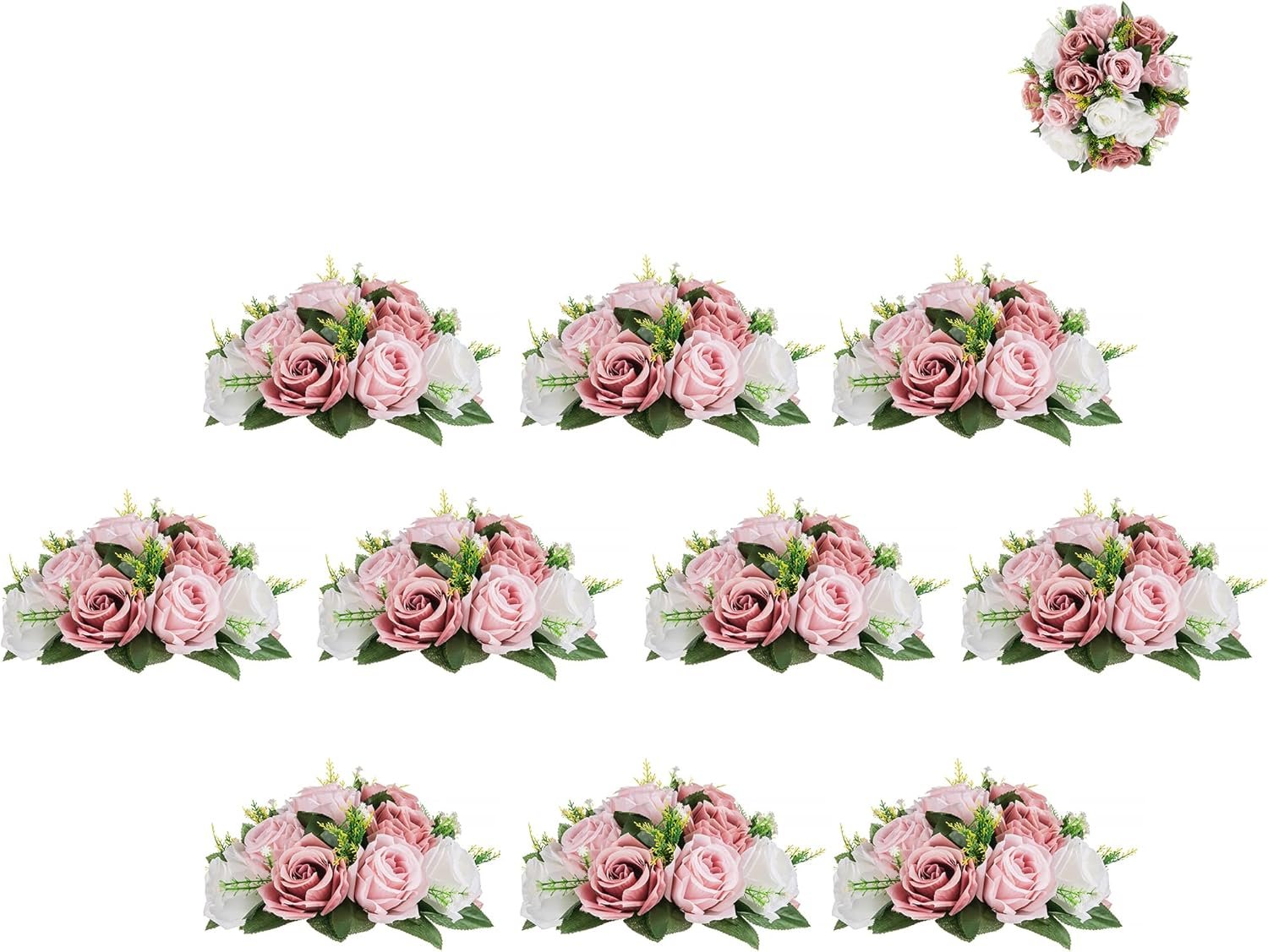 GREAT VALUE FOR MONEY: They are elegant & sophisticated and look like the REALISTIC flowers with beautiful thick and lush roses (8cm diameter), scattered little white flowers (baby’s breath) and greenery. The faux flower arrangements are perfectly symmetrical and full. They are economical and you can save such a package, compared with real flowers in events.