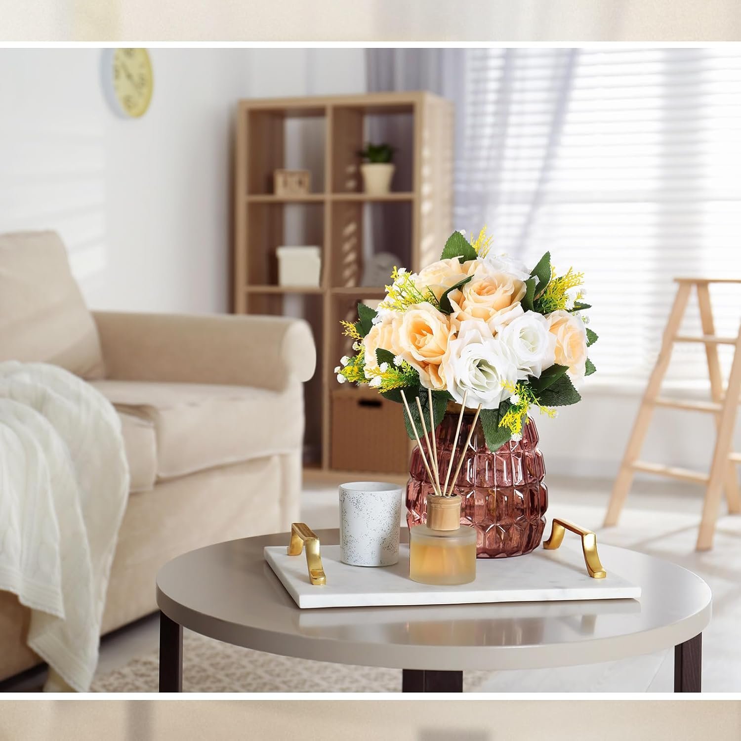 Quality Material Build: our rose flowers for centerpieces are meticulously crafted from quality silk, with foam base, These materials contribute towards an enhanced durability of the flower decoration; The quality silk renders a touch of elegance and sophistication, while the robustness of plastic and foam ensures long lasting use