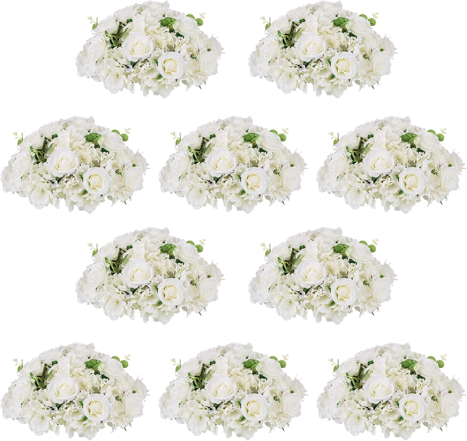 NUPTIO Flower Ball Arrangement Bouquet – 10 Pcs 15.7 inch Diameter White Fake Flowers Roses Balls for Centerpieces Tables – Artificial Rose Arrangements for Wedding Centerpiece Table Decorations