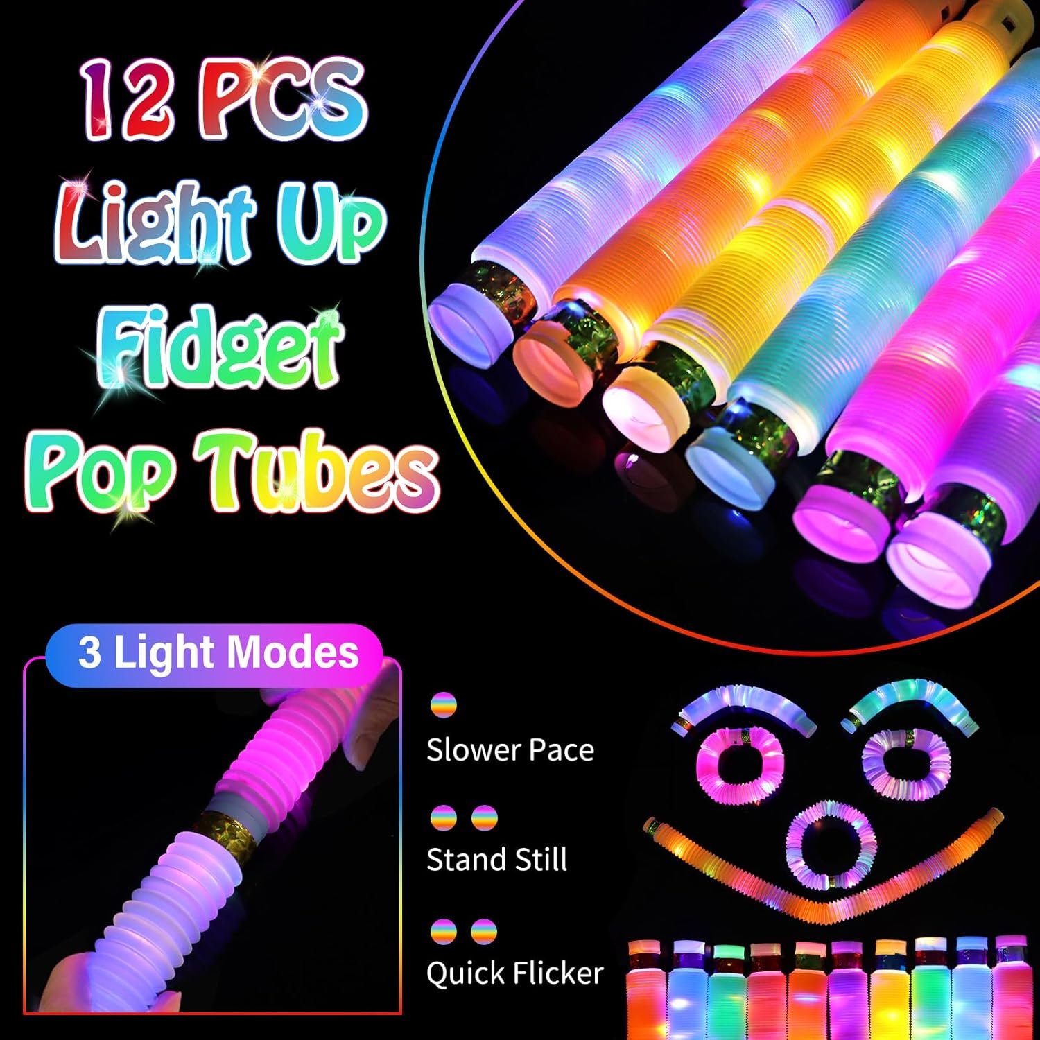 Widely Application – The kids’ christmas party favors sets are excellent sensory fidgets party favor, glow pary supplies, pop parties, party favor bags stuffers, party lights sticks, goodies bag stuffers for halloween christmas celebrations and festivals. And party favor pop tubes light up toys are amazing birthday and party return gifts suitable for families, classrooms and friends. It will lead to hours of fun and enjoyment for toddlers kids even adults.