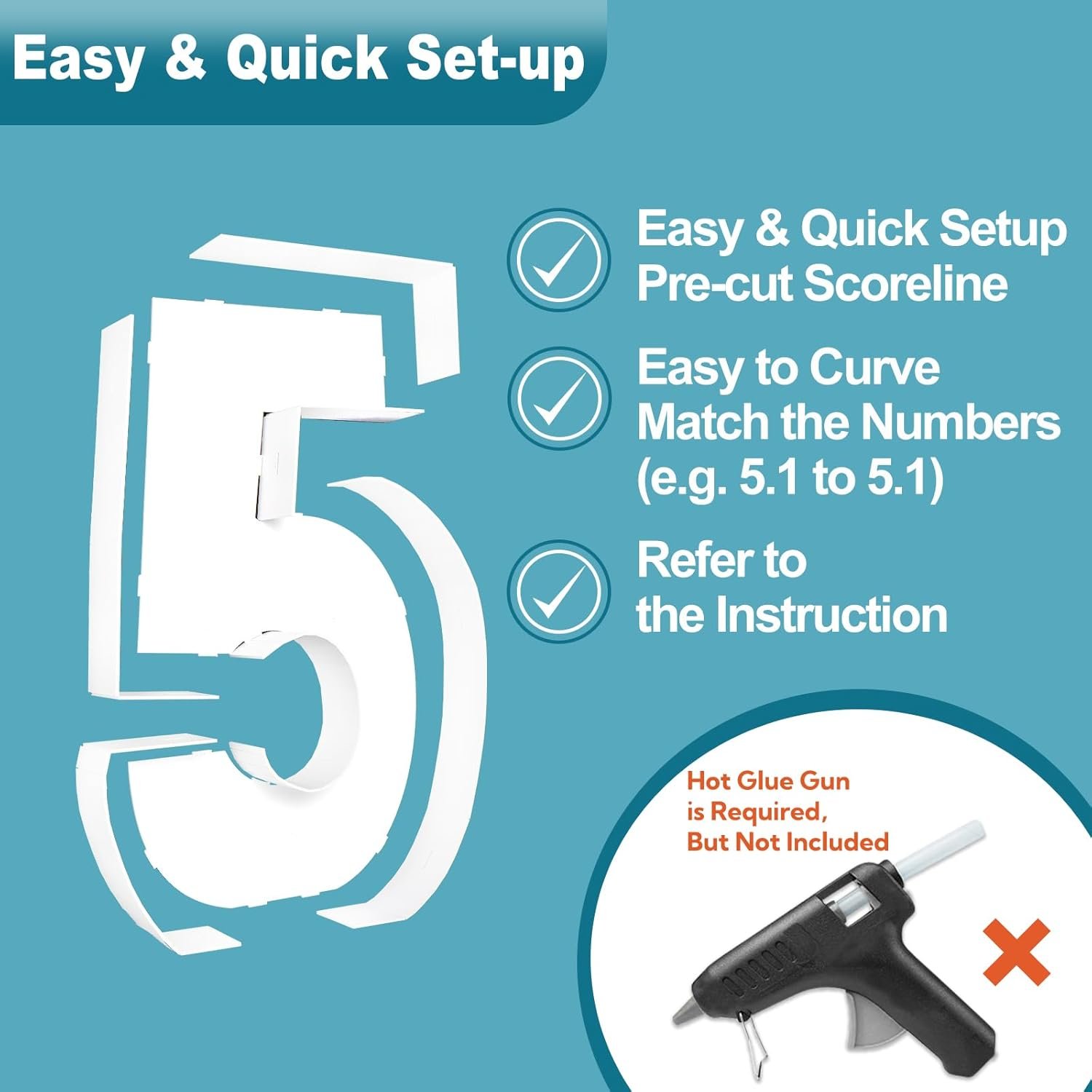 【EASY TO SETUP】Marquee Numbers are pre-cut, all you needed was a glue gun to make it happen! Follow the instruction and video, and take 10-30 minutes max. Insert the bottom plate into the corresponding hole. The hole design makes it more firm and reliable. You don’t need to worry about it toppling over. You don’t need to worry about it toppling over.