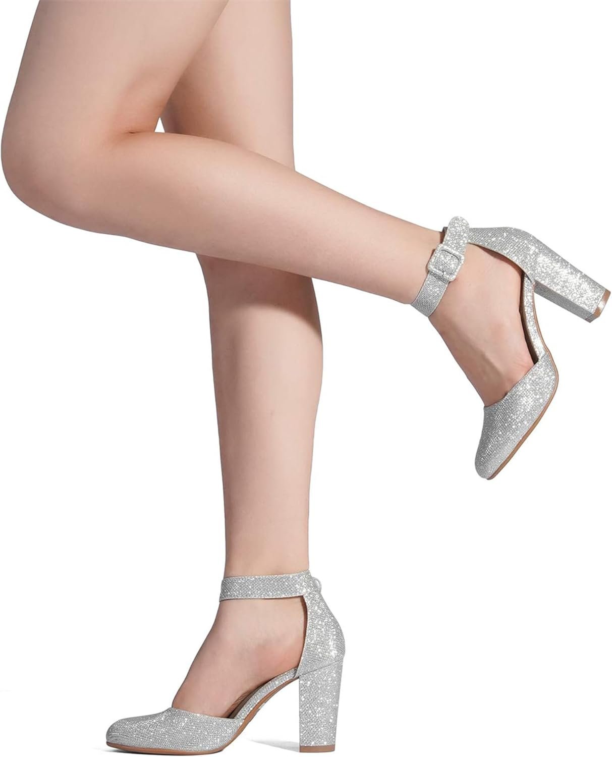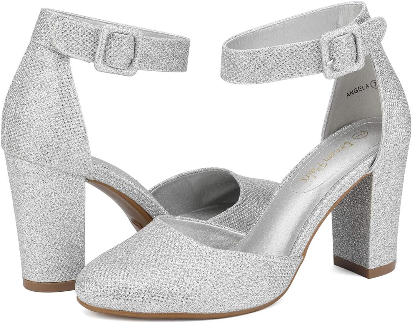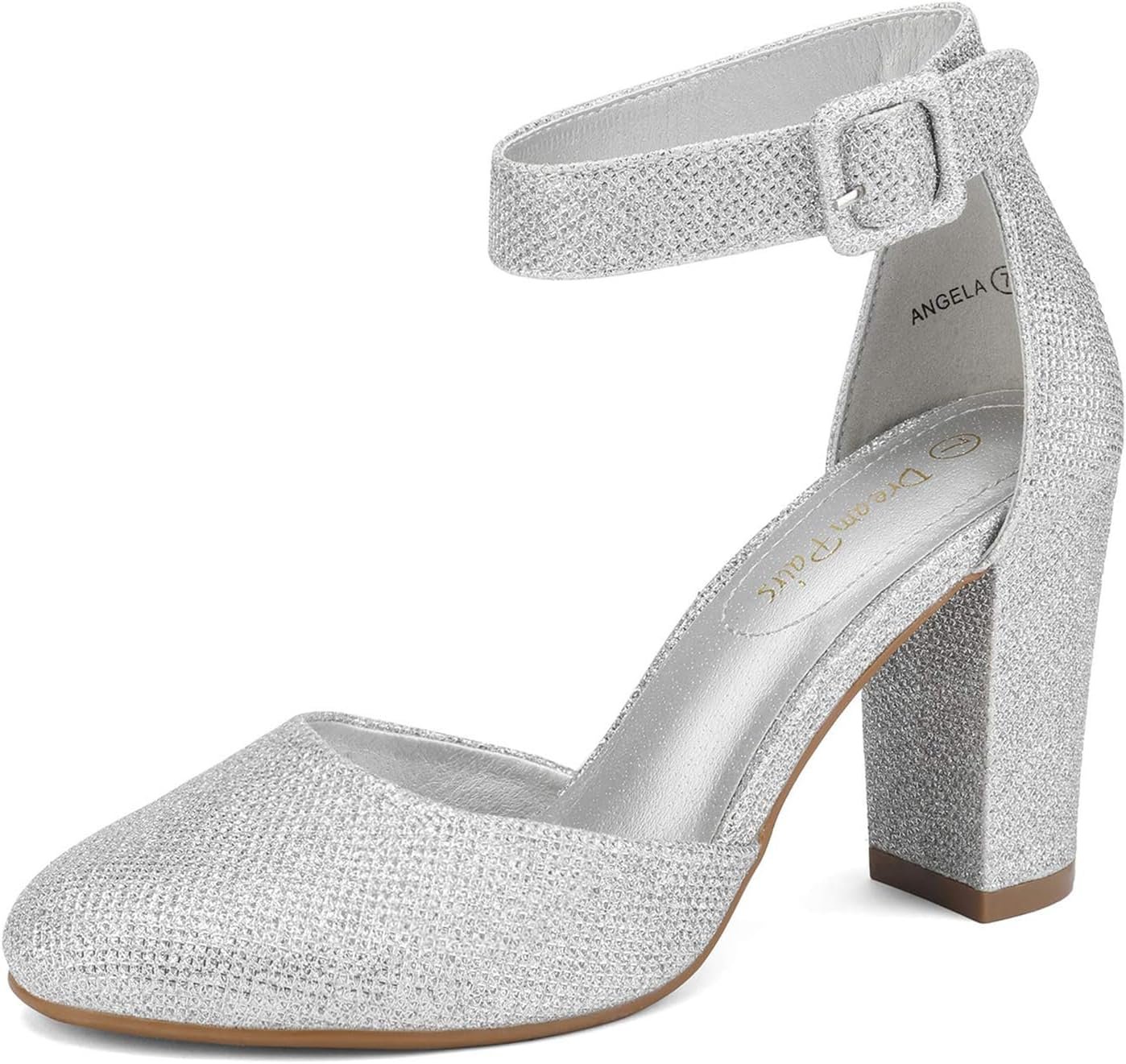 DREAM PAIRS Women’s High Heel Ankle Strap Closed Toe Chunky Wedding Pumps Shoes