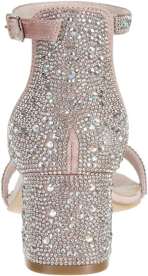 SheSole Women’s Open Toe Strappy Low Block Heel Bling Rhinestone Sandals for Wedding Bride Dress Shoes