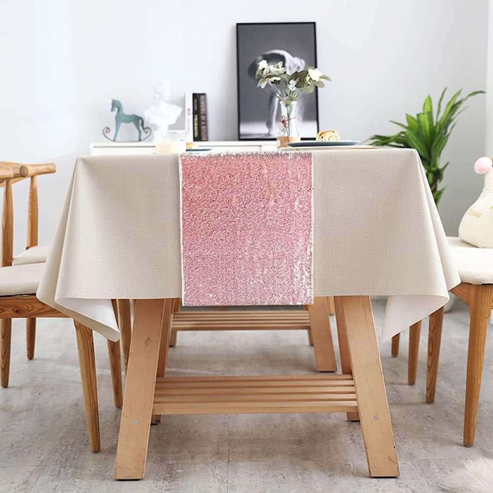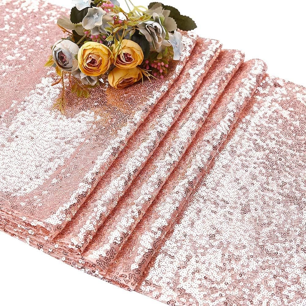 10 Park Sequin Table Runners Rose Gold 12 X 108 Inch Glitter Rose Gold Tables Sparkle Table Covers for Holiday Wedding Birthday Christmas Wedding Birthday