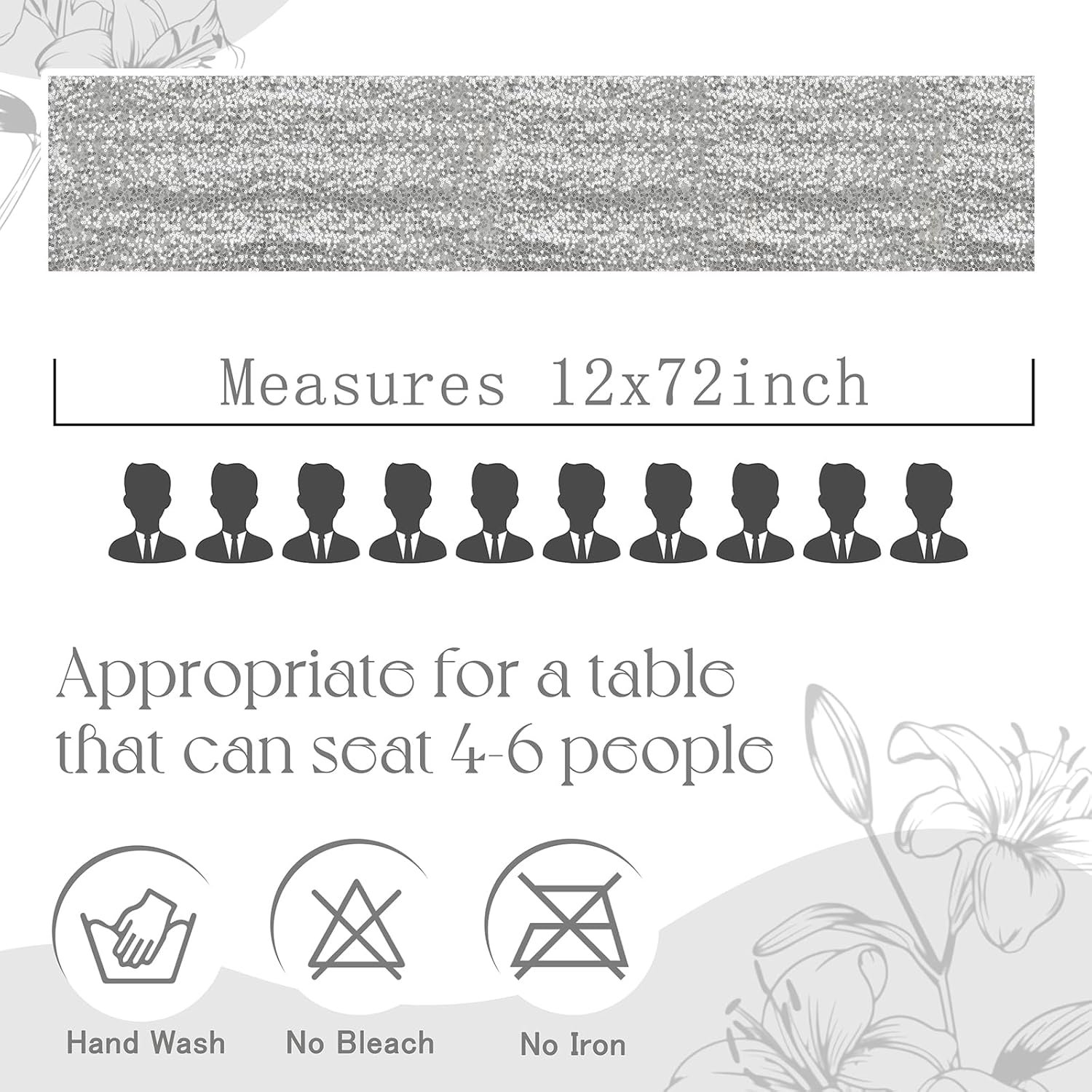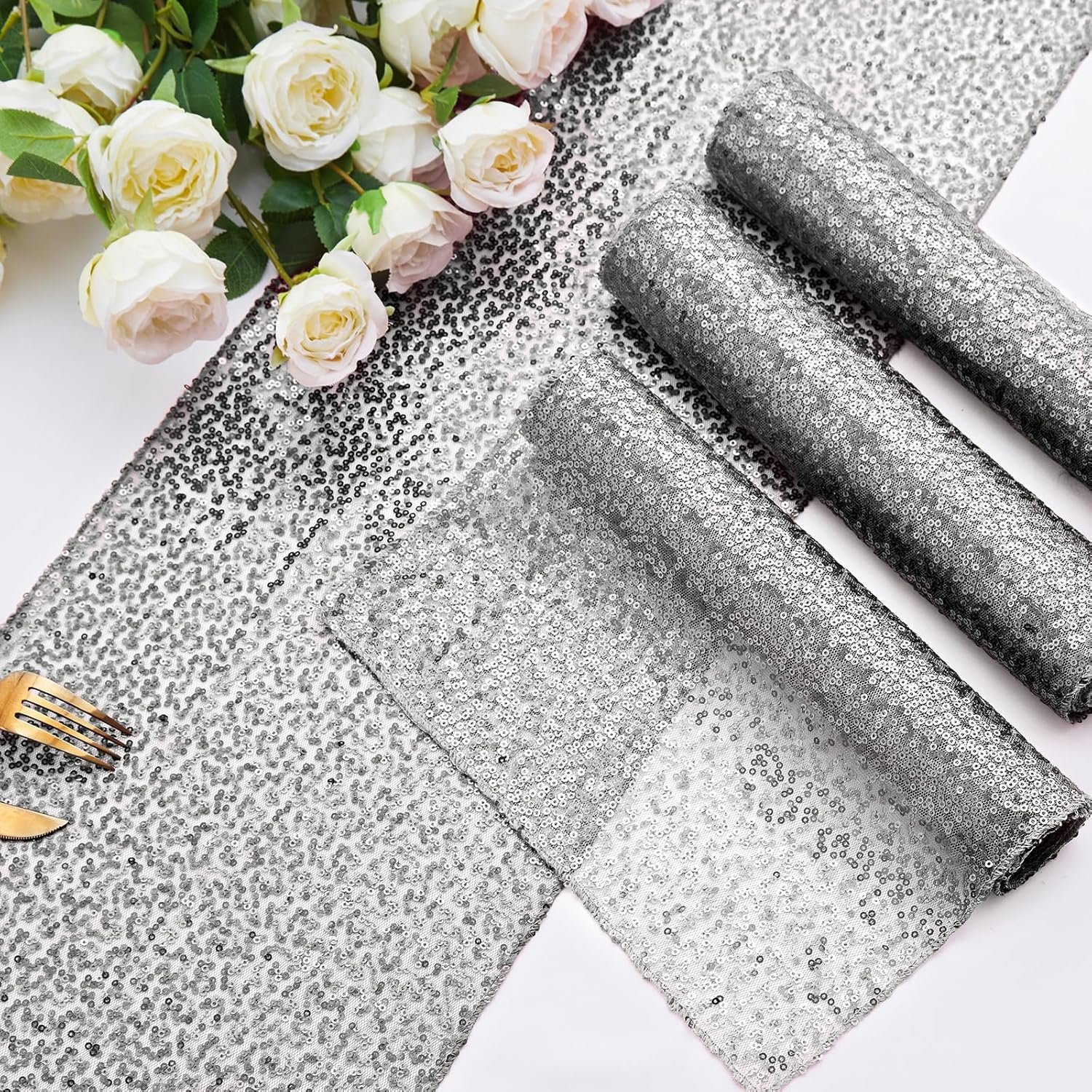 What You Can Get: Package includes 12 pack silver sequin runners measuring 12 x 72 inches (30 x 180 cm), which is large enough to cover rectangular and round tables, and can be seamlessly connected to form longer tables. The gorgeous sequin design creates a dynamic visual effect and unique atmosphere, leaving a lasting impression.