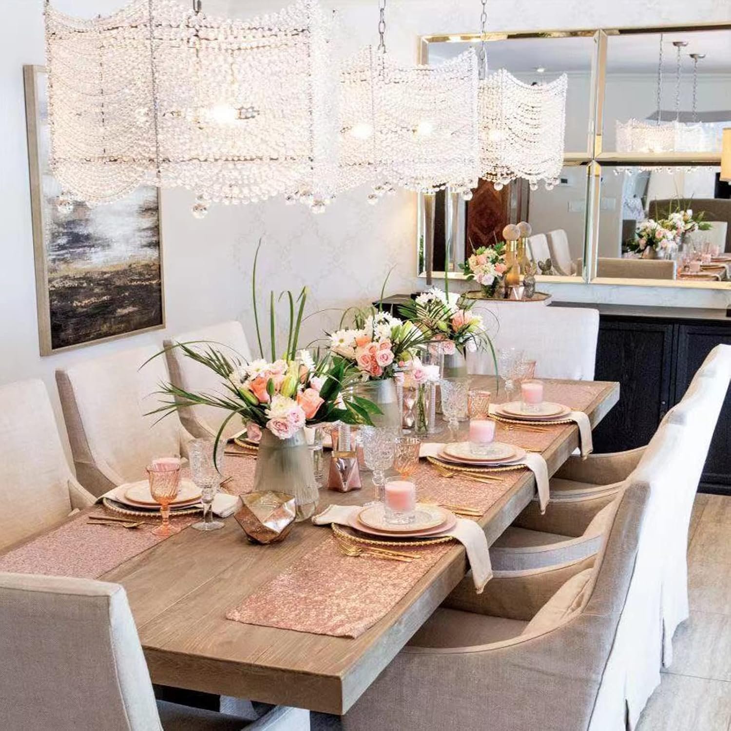 MATERIAL & WORKMANSHIP: Environmental friendly 3mm glitter round sequins with polyester mesh base embroidery. High sequin density, sparkle&shining sequins. Cutting by laser machine to ensure the piece length straightly. High overlocked stitches avoid sequin falling off easily. Made by professional home textile workers to enhance the quality of the table runner.